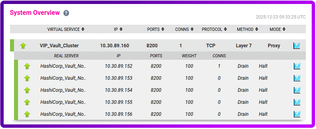 /v1/sys/healthendpoint. It automatically distinguishes between an Active Leader (200 OK) and a Standby Node (429 Too Many Requests), ensuring zero-latency failover. - Easy lifecycle management: Need to patch the OS or upgrade Vault? No problem. You can cycle nodes one by one, while the load balancer proactively diverts traffic away from draining nodes, preventing the dreaded