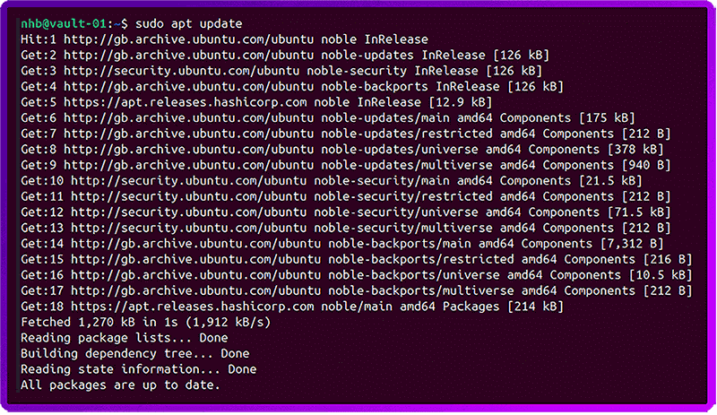 sudo apt update And you should see apt.releases.hashicorp.com in the output: