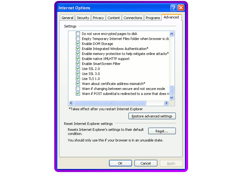 Note for enabling TLS1.0 in IE6 - your only option if you need to get Windows XP clients to works with SSL.