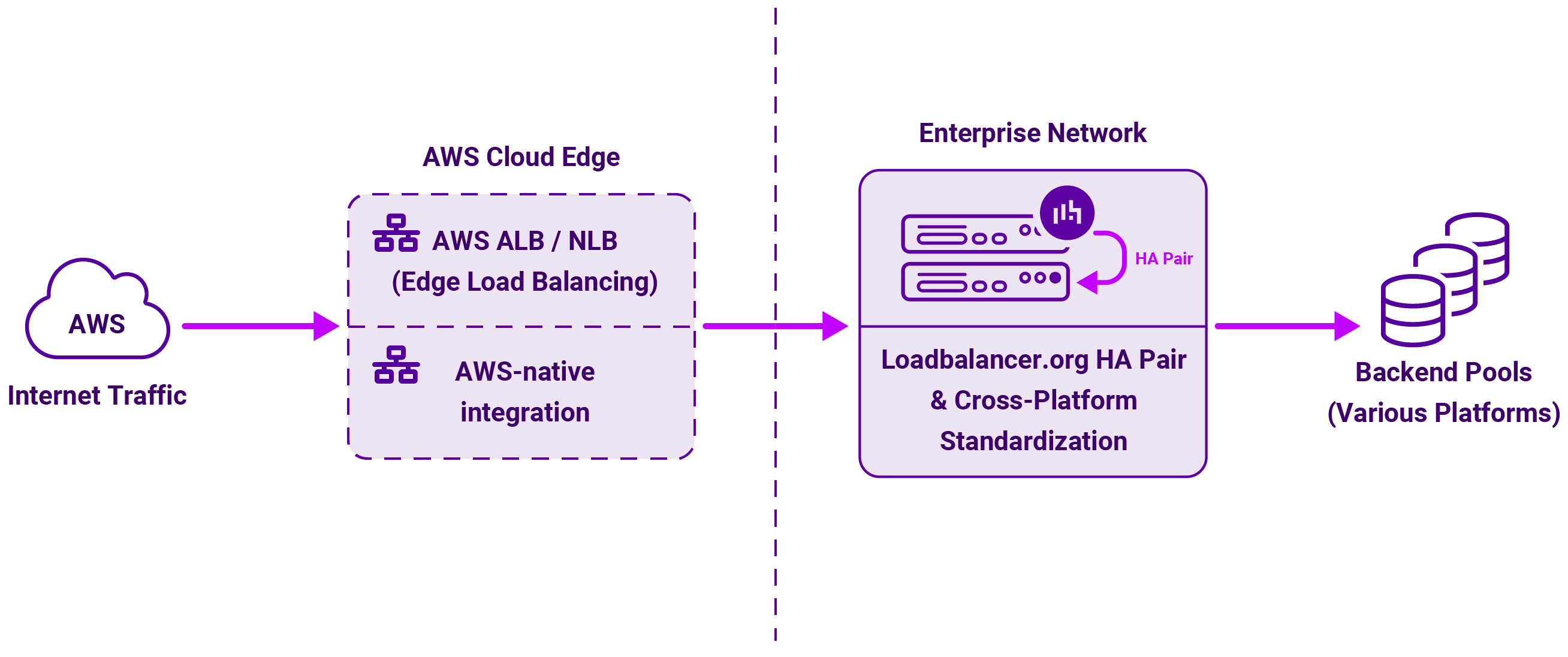Loadbalancer’s Enterprise AWS ADC is cloud-agnostic load balancer, delivered as a virtual appliance on EC2 — usually deployed as an HA pair behind one or more AWS load balancers, or directly with Elastic IPs.